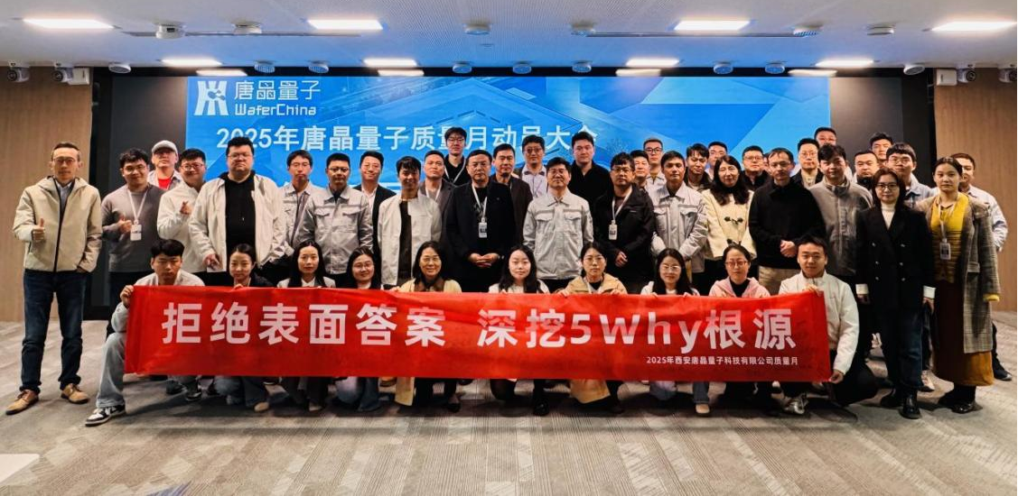 2025年10月20日,唐晶量子在公司多功能厅隆重举行2025年质量月动员大会。全体部门员工参会,会议围绕“拒绝表面答案,深挖5Why根源”主题,拉开了为期一个月的质量提升专项活动序幕。